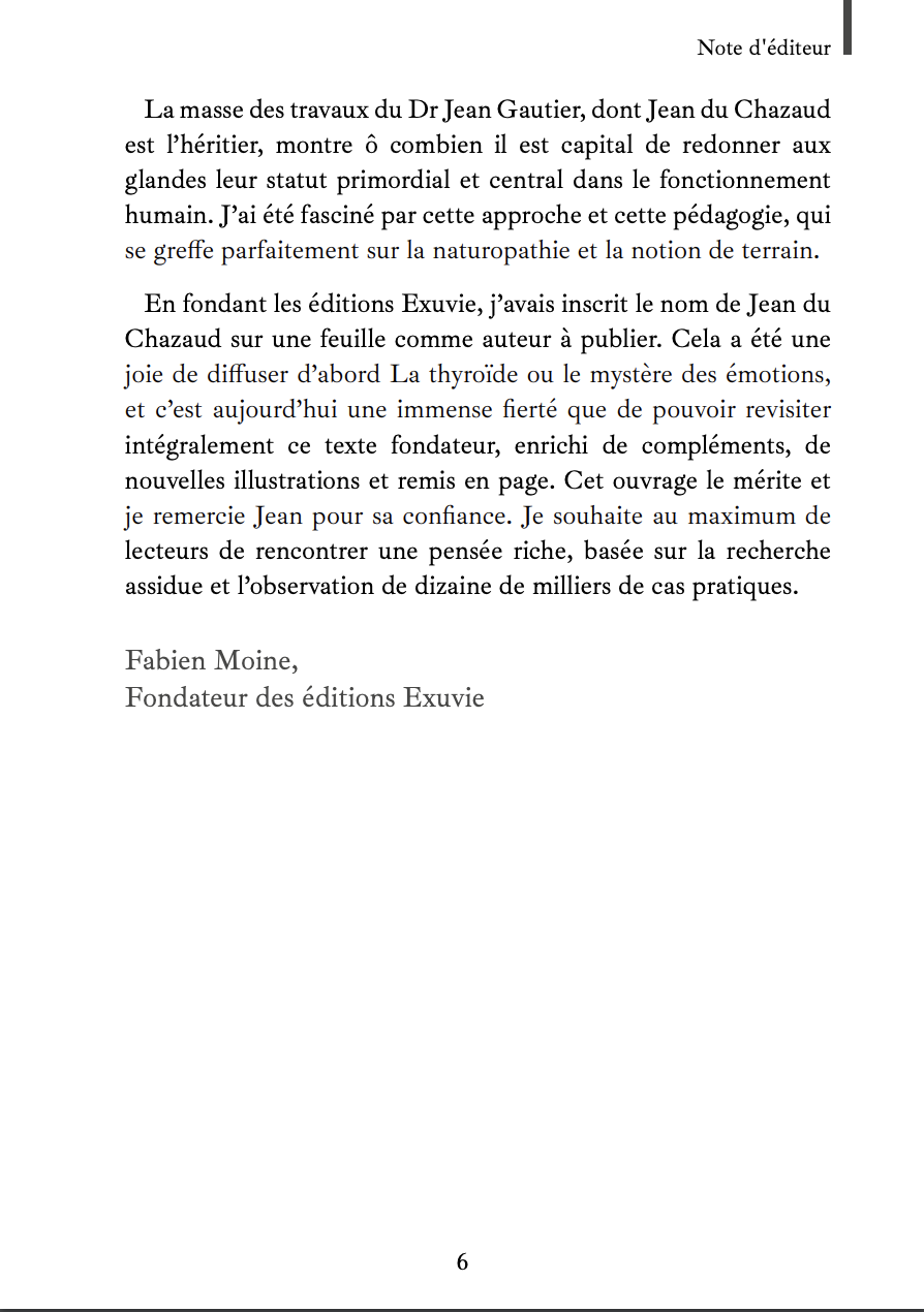 A la suite de Jean Gautier, Jean du Chazaud essaie de montrer combien il est temps de rendre aux glandes leur véritable importance dans la gestion de toute l’économie humaine.