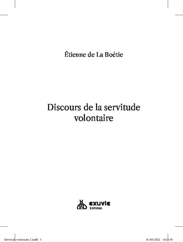 Historiquement le Discours de la servitude volontaire (ou le Contr’un) est un livre écrit par Étienne de La Boétie au XVIe siècle alors qu’il n’était pas encore majeur. Ce texte a été initialement publié en latin en 1574 avant d’être traduit et diffusé en français en 1576.