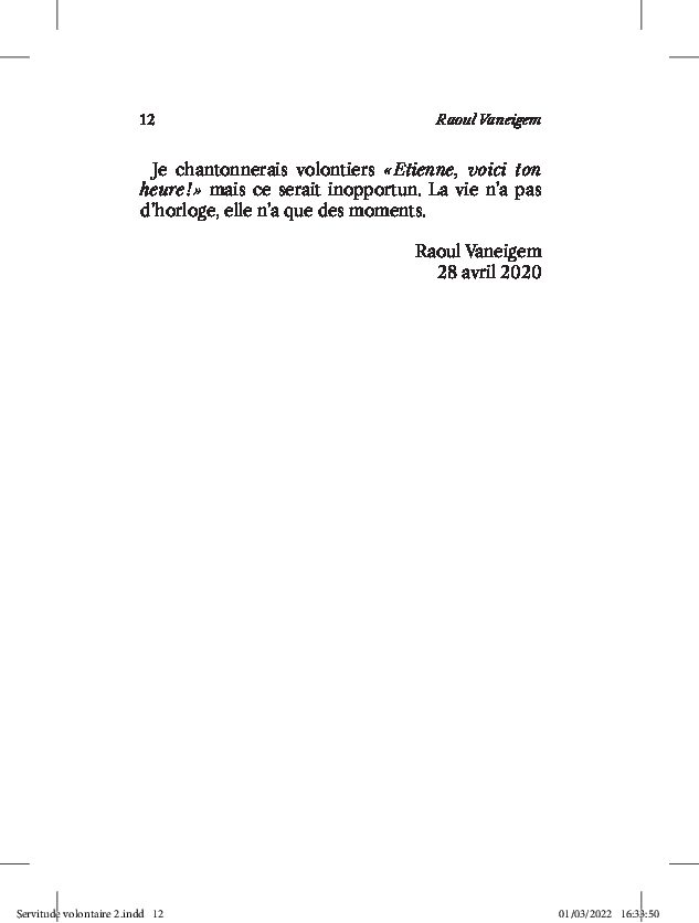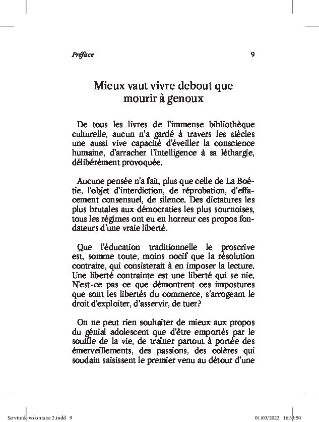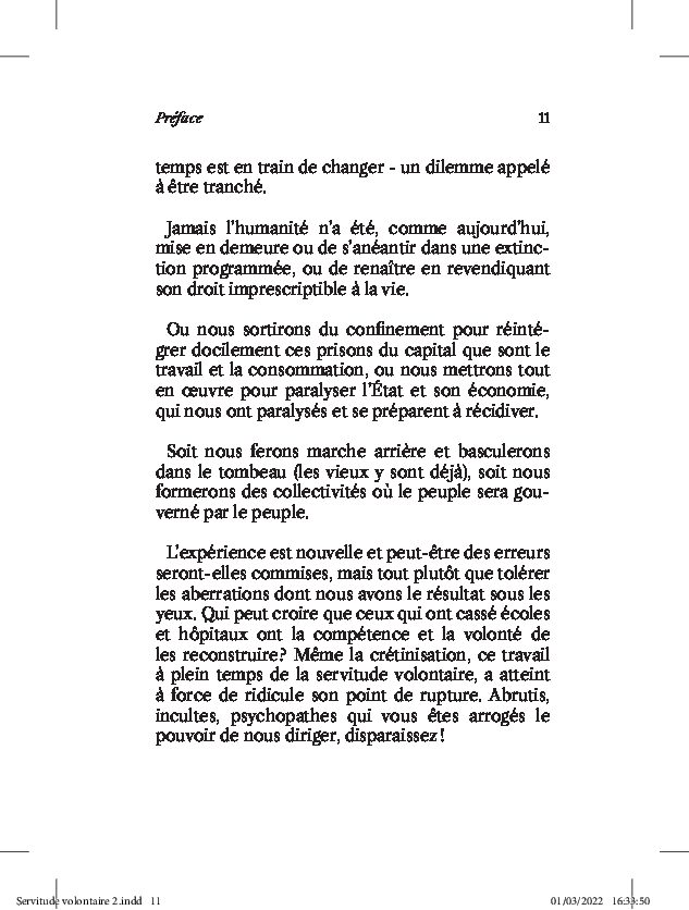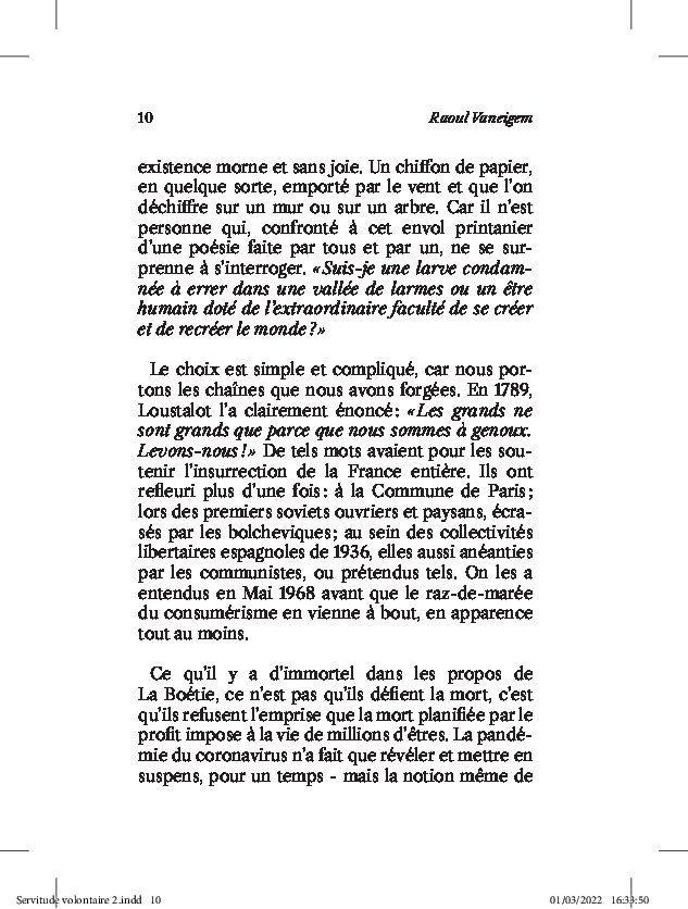 En plus d’une note d’éditeur de plusieurs pages, cette réédition du texte de La Boétie est introduit par une préface du célèbre philosophe et situationniste belge Raoul Vaneigem.