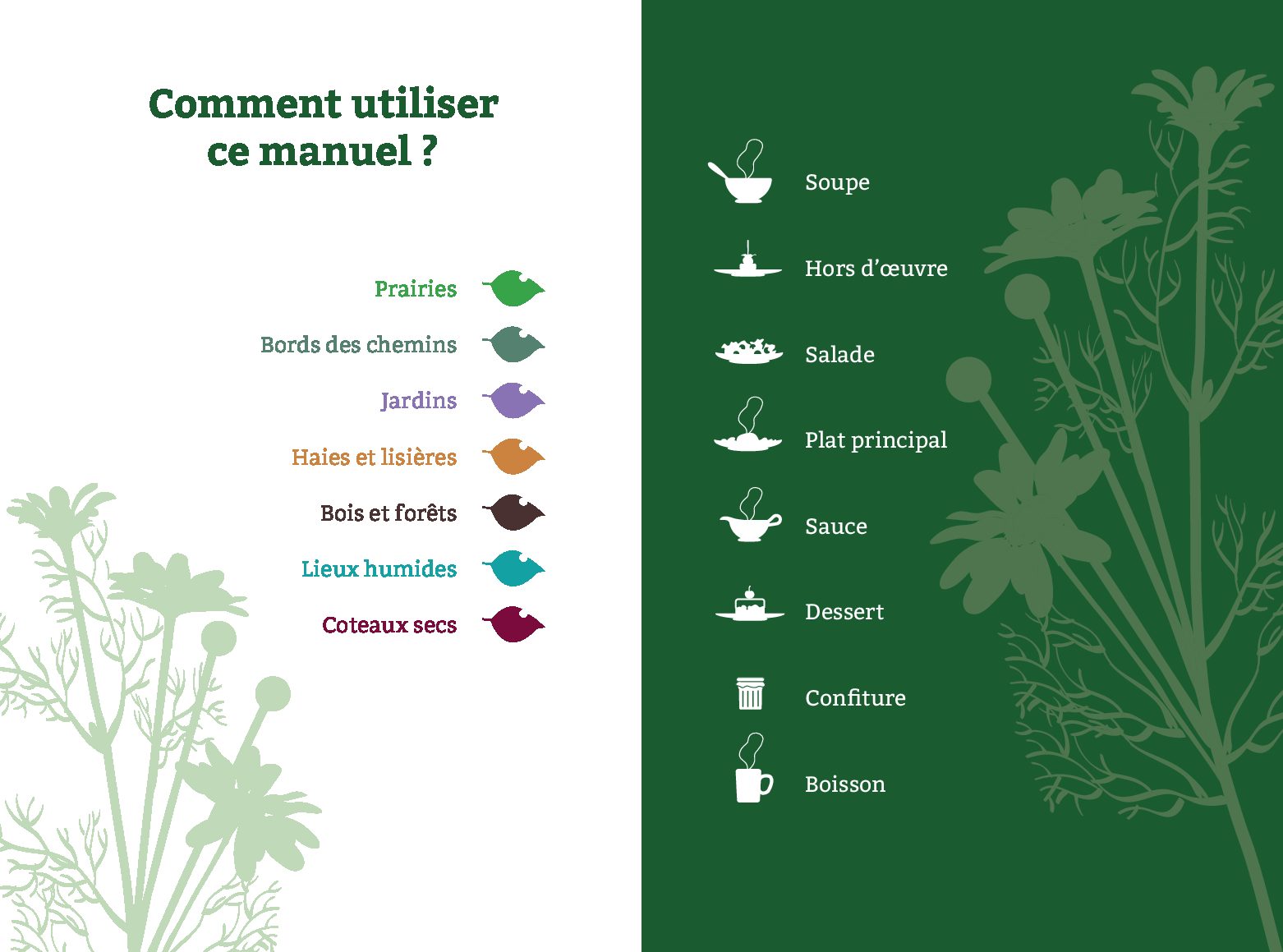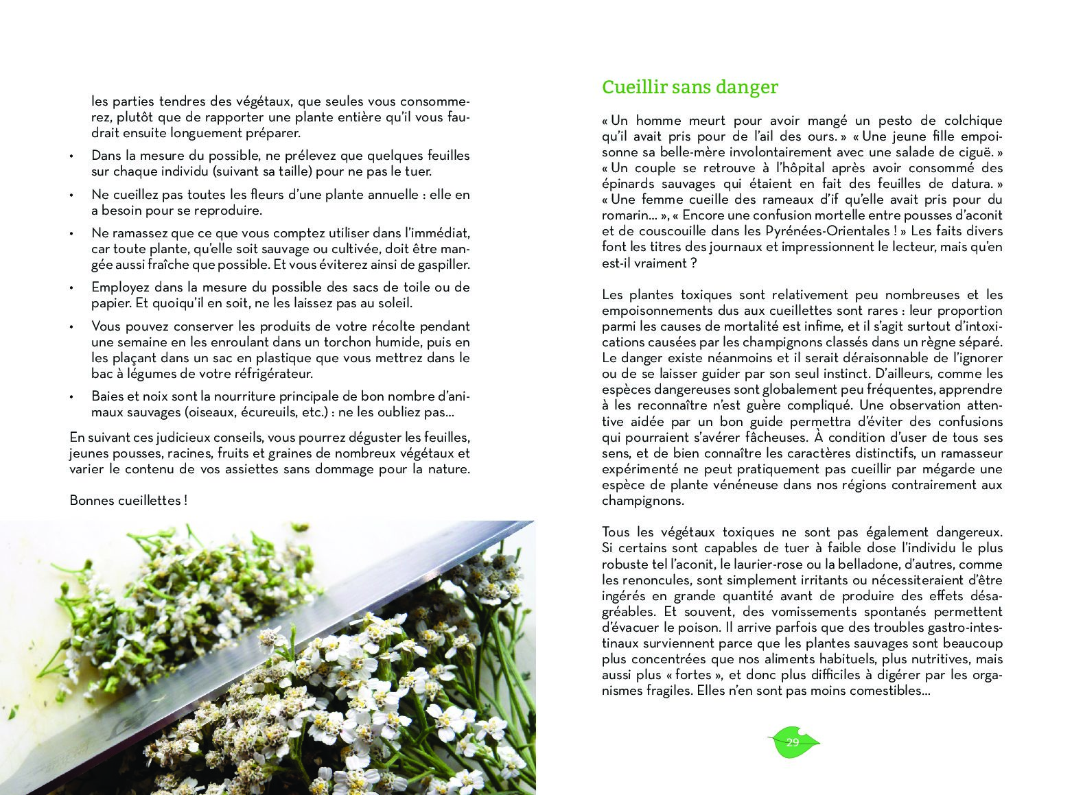 Il présente 65 espèces faciles à reconnaître, savoureuses, et bonnes pour votre santé par leur richesse en nutriments. Un code couleur permet d’identifier immédiatement leur habitat. Chaque description est accompagnée de photos et d’une recette facile à réaliser.