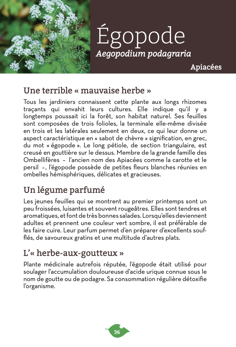 Voici un herbier de vie et de plaisir. Vous y découvrirez les principales plantes sauvages comestibles de nos régions et les façons de les accommoder.