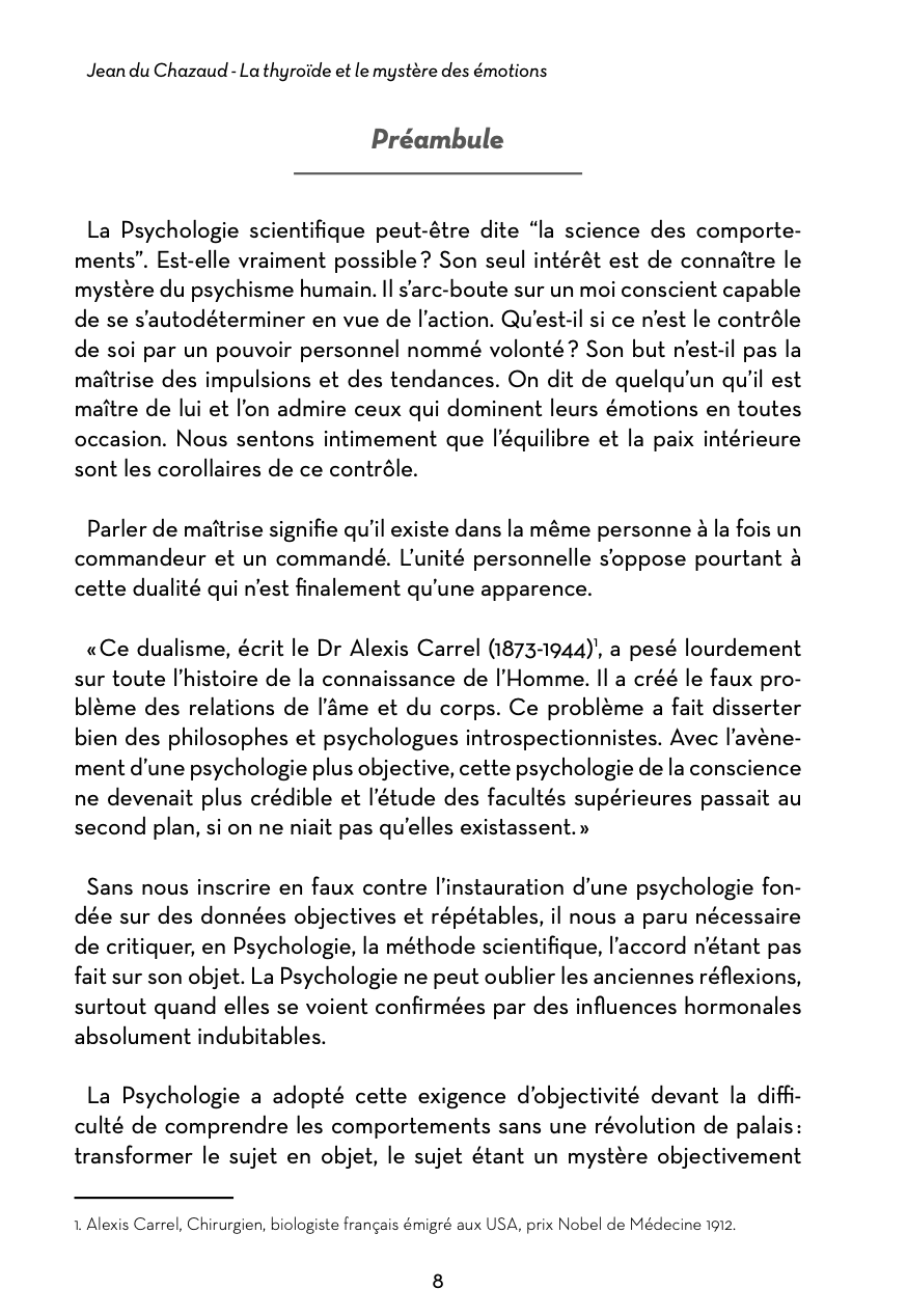 Sans la connaissance du fonctionnement glandulaire, véritable clé de compréhension générale, il est impossible de connaître les « mécanismes » psychologiques, d’expliquer les facultés mentales et donc aussi les maladies mentales.