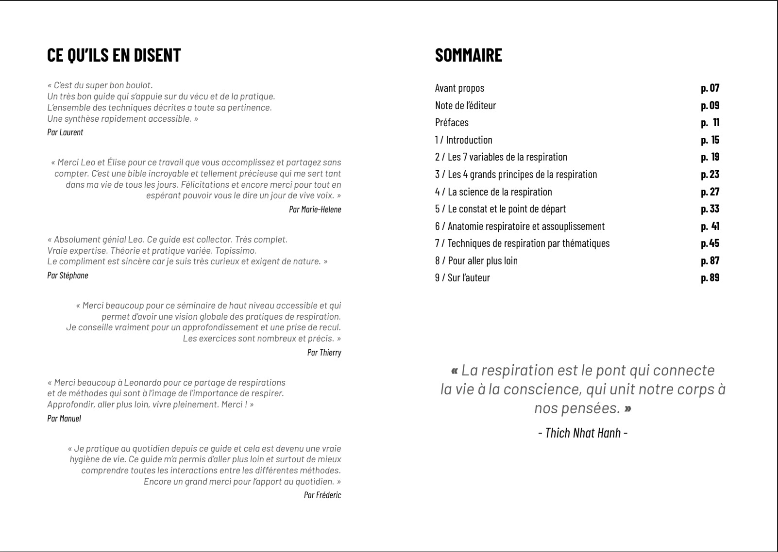 La respiration est le premier pilier, par ordre d’importance, pour une vitalité et une santé extraordinaire pouvant durer dans le temps. Dans ce guide, Leonardo Pelagotti a concentré plusieurs années de recherche et techniques autour de la respiration, ainsi que la sagesse et les instructions contenues dans les meilleurs livres qu’il a pu trouver sur le sujet.