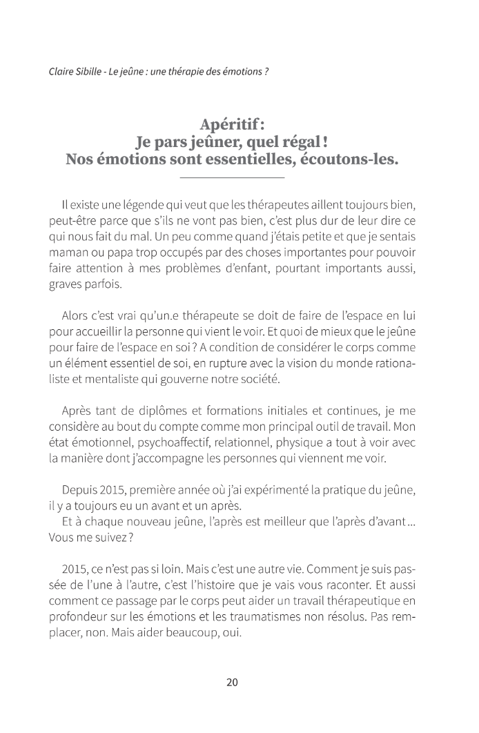Peut-être que ce livre vous aidera à franchir ce mur de papier. Car c’est de vous et de votre santé qu’il s’agit. L’auteure jeûne régulièrement de toutes les manières possibles depuis des années. Elle pratique par ailleurs la psychothérapie intégrative EMDR et l’Ecothérapie.