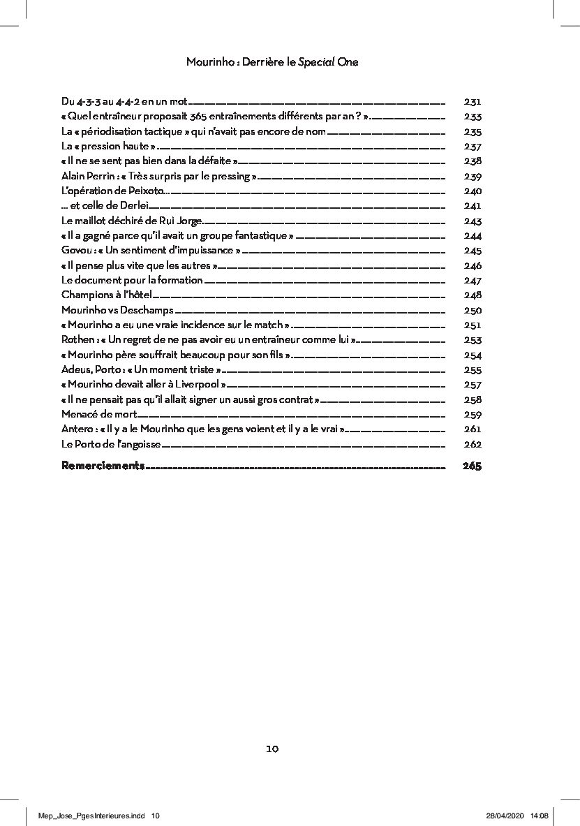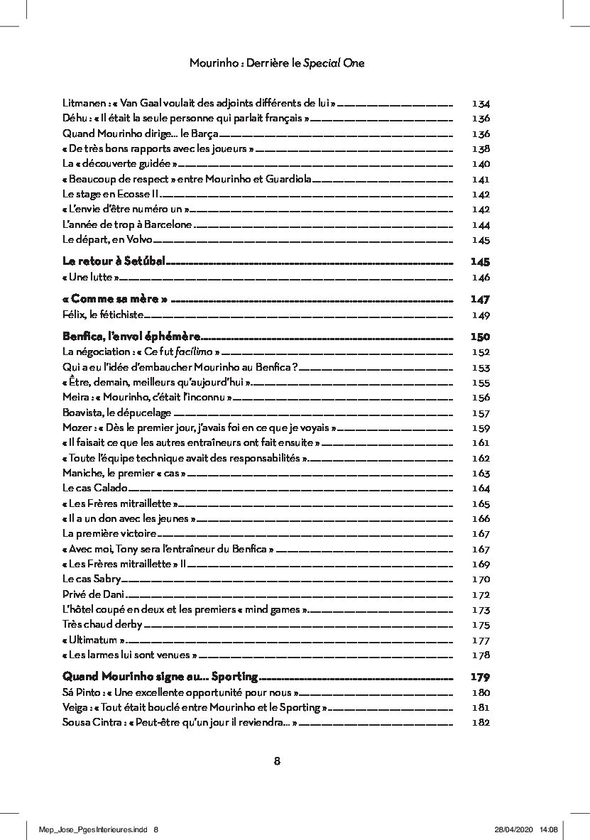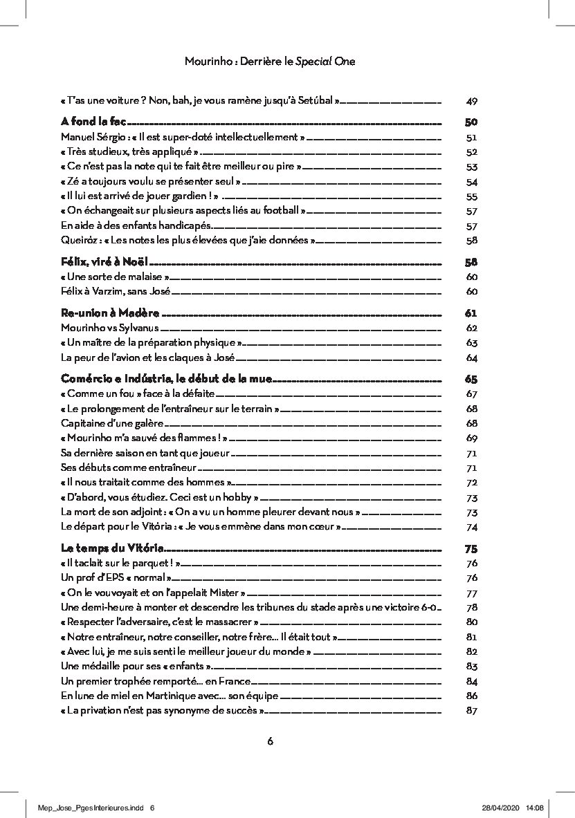 Plus qu’un énième bouquin sur le Portugais, cette œuvre retrace l’ascension du natif de Setúbal : son enfance rythmée par la carrière de son père, sa vie de joueur (souvent méprisée), sa formation de professeur (fréquemment caricaturée), son rôle d’éducateur (méconnu pour beaucoup), celui d’adjoint de Robson ou de Van Gaal (raillé par certains), ses débuts comme entraîneur principal au Benfica, la révélation avec Leiria et les débuts de la gloire avec les Dragons.