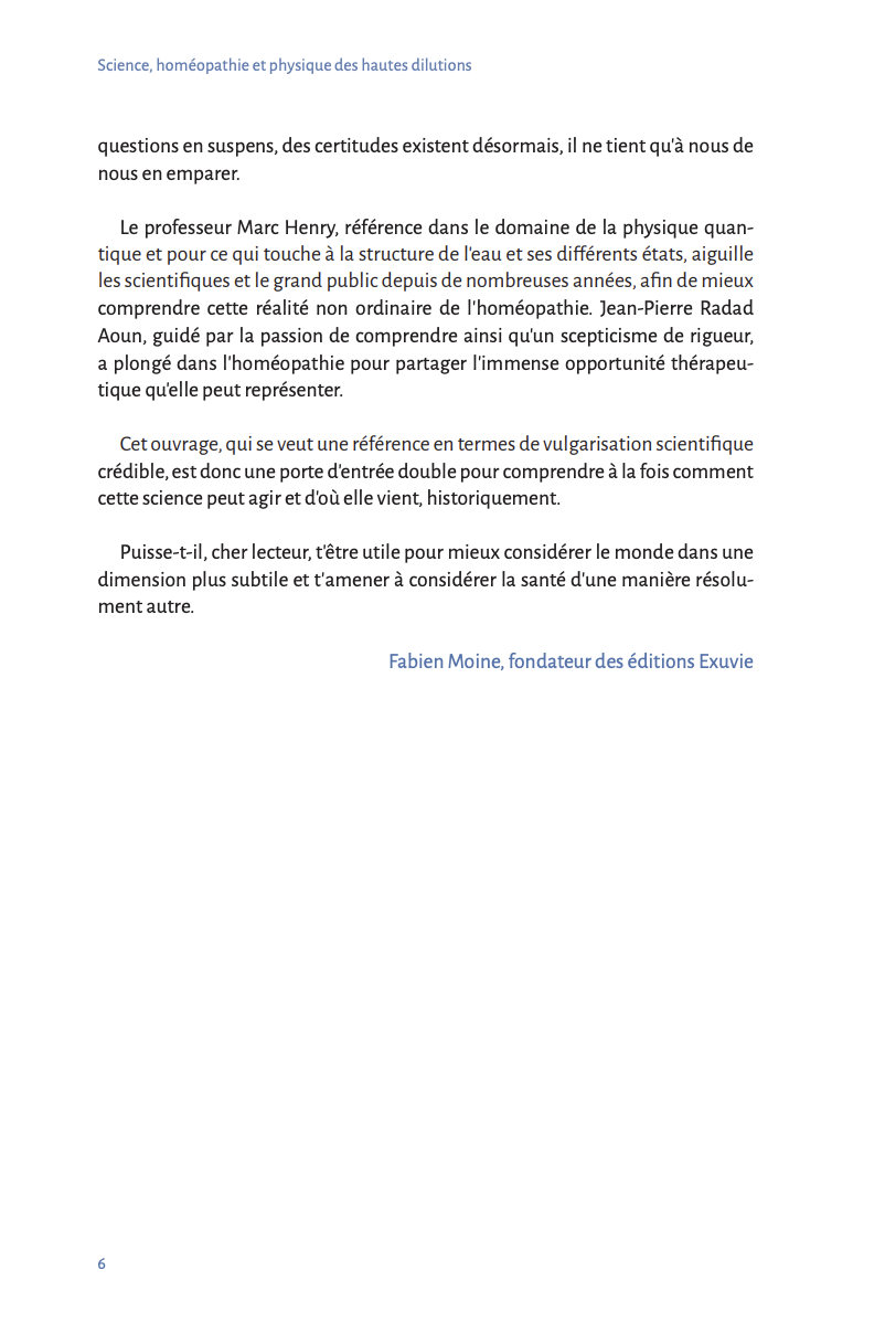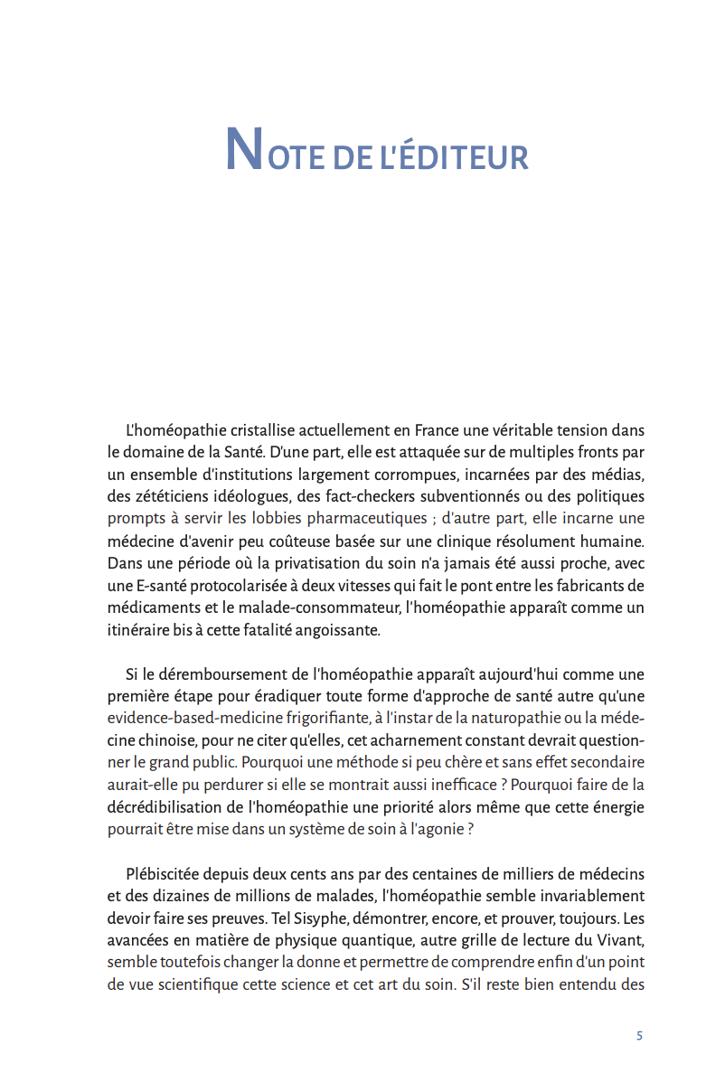 Le but de cet ouvrage est de proposer une explication du fonctionnement de l’homéopathie, en se fondant sur une démarche scientifique, étayée par des expériences, des résultats de recherches et des modèles mathématiques. Tout ceci à travers des entretiens avec différents médecins et scientifiques, spécialisés en physique quantique, en médecine bactériologique, en virologie et en homéopathie.