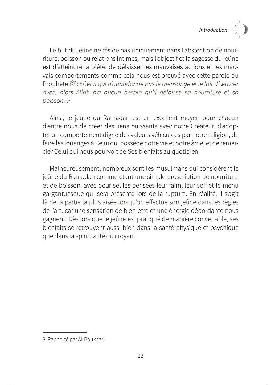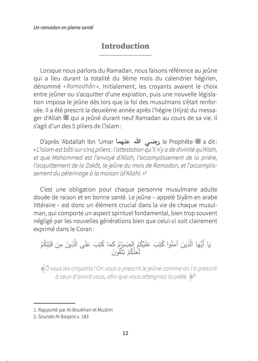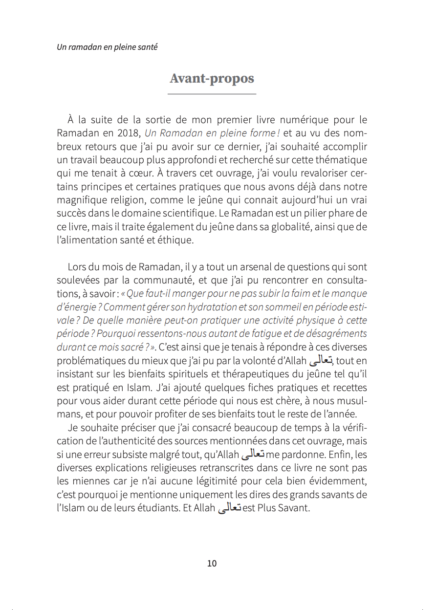 Tant de problématiques soulevées durant le jeûne du mois de Ramadan qui trouveront enfin leurs réponses dans cette réédition à travers de nombreux conseils alliant Islam, science et naturopathie. Cet ouvrage complet s’adresse non seulement à la communauté musulmane (bienfaits spirituels et thérapeutiques du jeûne y sont remis en avant, tel qu’il est pratiqué dans l’Islam), mais également à toute personne souhaitant prendre soin de sa santé.